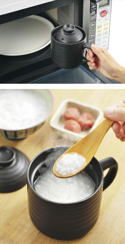 一人暮らし、ちょっとご飯、欲しい時に嬉しい! お米1合がたったの約5分!(蒸らし除く) 電子レンジで手早く簡単にご飯が炊ける、 陶器製の炊飯マグです。