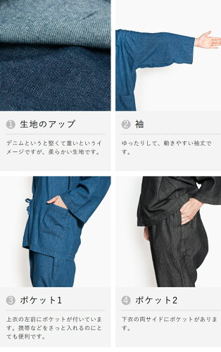 作務衣をカジュアルに着たい方に人気の、デニム素材。