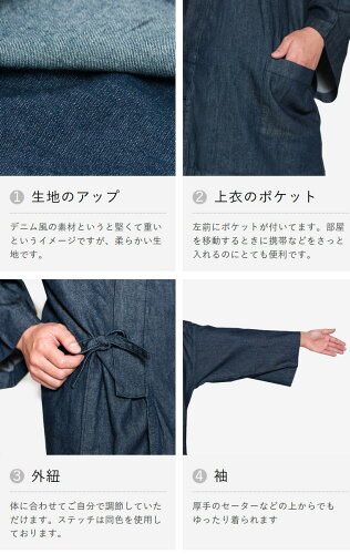 作務衣をカジュアルに着たい方に人気の、デニム素材。